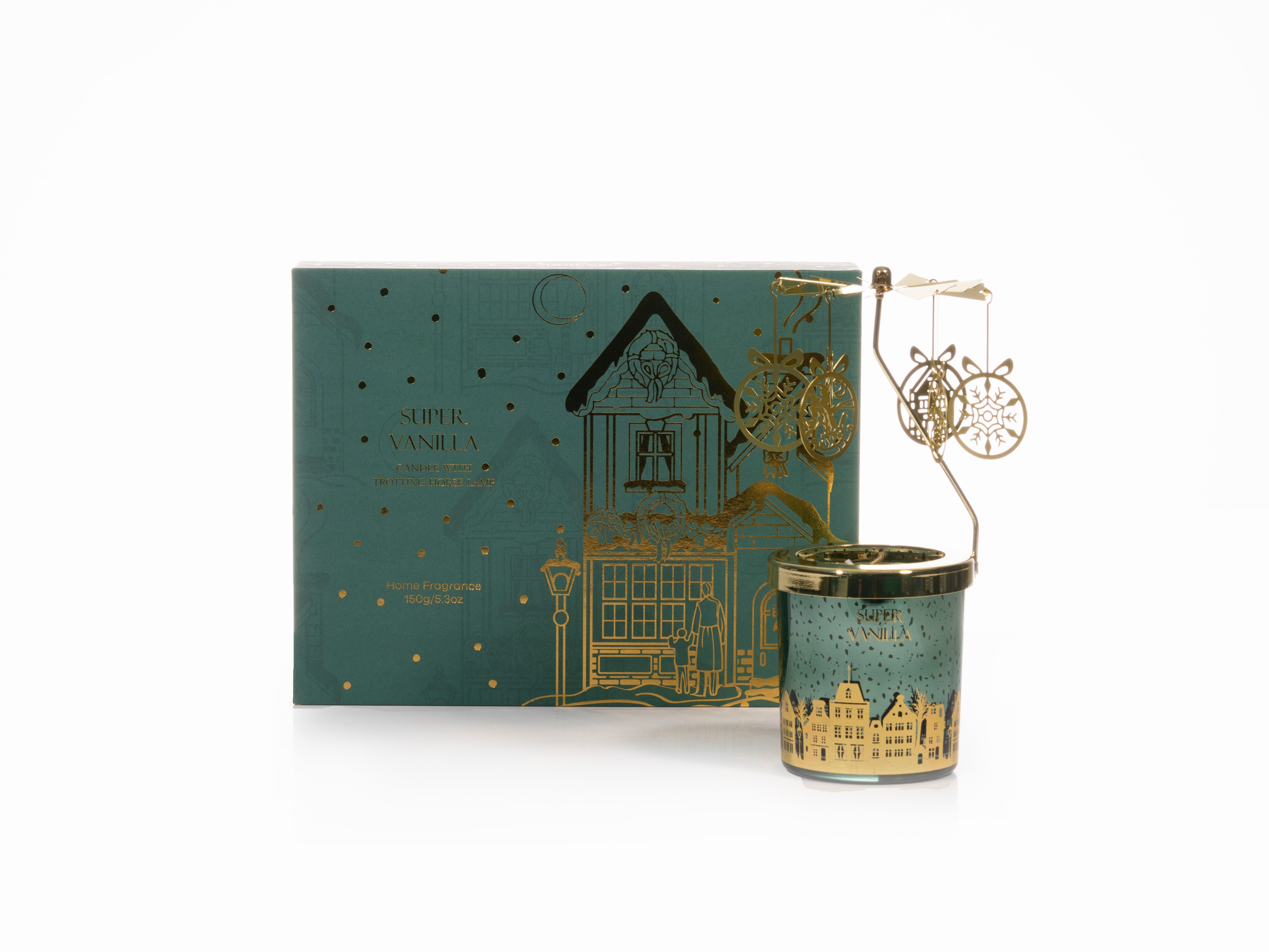 اكتشف شمعتنا المعطرة الساحرة مع مصباح حصان هرولة، وهي شمعة عيد ميلاد احتفالية مصممة لإضفاء لمسة من الأناقة والتقاليد على احتفالاتك بالعطلات. للاحتفال بنهاية العام، يتم تحويل الجرس والثلج وصناديق الهدايا إلى مجموعة شموع دائرية، مما يضيف عنصرًا غريبًا وديناميكيًا إلى ديكورك. غني بمزيج من العطور الموسمية، يملأ مساحتك برائحة دافئة وجذابة لموسم العطلات.